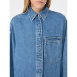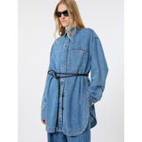 Oversized Rounded Hem Pocket Detail Denim Shirt