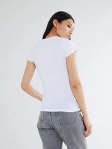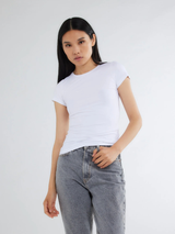 M001-FTS007 Fitted Short Sleeve T-shirt from Majestic This semi fitted short sleeve t-shirt features a round neck, ribbed neckline. - 94% Viscose 6% Elastane