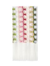 Light and enveloping, the women's stole made of a cotton and viscose blend stands out for its abstract floral lacework, adding a touch of femininity and refinement. The fringes along the edges complete the design with a delicate movement, making it ideal for enhancing any style with elegance.