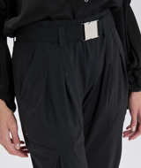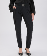 The classic jodhpur style — with a soft, roomy upper leg that narrows toward the hem — is reinterpreted in a casual key through the use of Sensitive®, a fabric that ensures comfort and freedom of movement. Stretch waistband with belt loops. Elasticated belt with metal logo buckle. Slanted side pockets. Back welt pockets with button. Exposed seams.