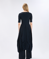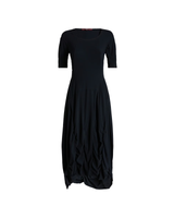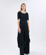 The On Top dress encapsulates the signature traits of the HIGH TECH line: fitted through the bodice, it opens from the waist down into a wide silhouette, enhanced by multiple cuts and gathered seams that create a harmonious drape. Crewneck. Short sleeves. Draping on the lower section. Asymmetric hem. No closure.