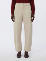 5-pocket trousers with a distinctive barrel-leg cut.