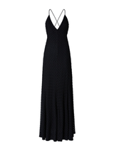 The women's long dress with a V-neck stands out for its Raschel lacework, which gives the viscose fabric a delicate and sophisticated texture. The fluid line and the lightness of the material combine in a design that enhances the silhouette with minimalist elegance. A perfect example of craftsmanship and timeless style, signed Missoni.
