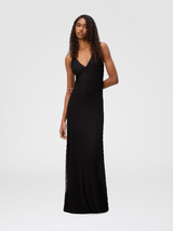 Long viscose dress with V-neck lace