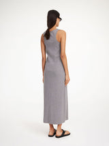 The Lovelo maxi dress is a wardrobe staple for the modern minimalist. Endlessly wearable, this sleeveless design is crafted from a blend of organic cotton with a ribbed finish that frames the figure. Style with the Jummis clip to accentuate your waist.