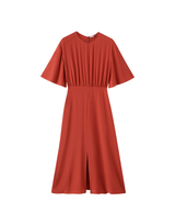 The Silsila Crepe de Soie Silk Dress is a fit to flare, draped style, crafted from lightweight silk. This elegant piece creates a flattering silhouette with its gathered waistline. A front split adds definition and enhances the dress’s fluidity.