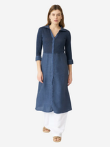 3/4 Sleeve Midi Shirt Dress from 120% Lino - 100% Linen - Midi Length - Button Up Closure - V-neck with collar - 3/4 Sleeves - Made in Italy