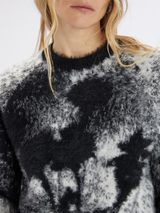 Soft and airy, the Fun-Fare sweater is crafted in two-tone jacquard with a black and white floral pattern across the front, echoing the signature prints of the Fall Winter 25 collection. Crewneck with ribbed trim. Long sleeves. Floral motif.
