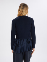 The Skitter cardigan features a series of openwork designs that define the waist and create a delicate net-like effect at the back. Cropped and slim-fitting, it’s ideal for layering over seasonal dresses and skirts without hiding their shape. Crewneck with ribbed trim. Front metal zip closure. Long sleeves with ribbed cuffs. Openwork pattern. Straight ribbed hem. • Wool blend, lightweight, soft handfeel.