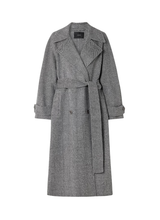 The Navarre Linear Double Face Wool is a relaxed fit coat, crafted from 100% virgin wool. This striking coat features an all-over herringbone pattern in contrasting tones. It's a double-breasted, trench coat inspired style, with lapels which can be worn open or fastened at the collar.
