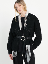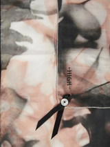 Sophisticated and versatile, the Shard silk scarf features an abstract floral motif — one of the signature patterns of the Autumn Winter 25 collection — blending shades of grey, powder pink, white, and black in an elegant faded effect. Fringed edges. Logo tape detail with mother-of-pearl button.