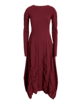 The On Top dress embodies the signature codes of the HIGH TECH line: fitted through the bodice, it flares gently from the waist down for a looser silhouette, enhanced by multiple seams and gathered cuts that create harmonious draping. Crew neckline. Long sleeves. Draped lower section. Asymmetric hem. No closure.