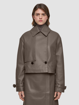 The Blaise Nappa Leather Jacket is a relaxed fit, cropped jacket, crafted from supple nappa leather for exceptional comfort and softness. Featuring versatile lapels, a storm flap, and adjustable buckled cuff straps, this ultra-cool style is defined by its classic trench coat finishes.