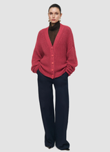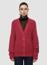 The Cirrus Cardigan is knitted in a soft cloud knit blend, combining warmth with a light, airy feel. Finished in Mulberry, it offers an effortless layer for everyday wear.