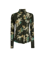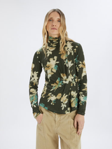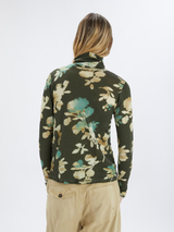 Lightweight, close-fitting and comfortable, this sweater is crafted from fine wool jersey and features a stylised floral print in beige and dark green with pale blue accents. A subtle gathering on the left side adds gentle draping and movement to the silhouette. High neck. Long sleeves. Gathered detail on the left side. Straight hem.