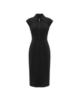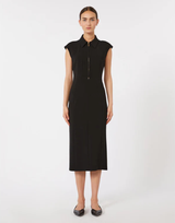 Cady dress with collar, zip front opening and cap sleeves.